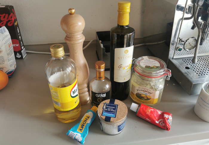- 75 ml bestes Olivenöl (ca. 4 bis 5 Essl.)